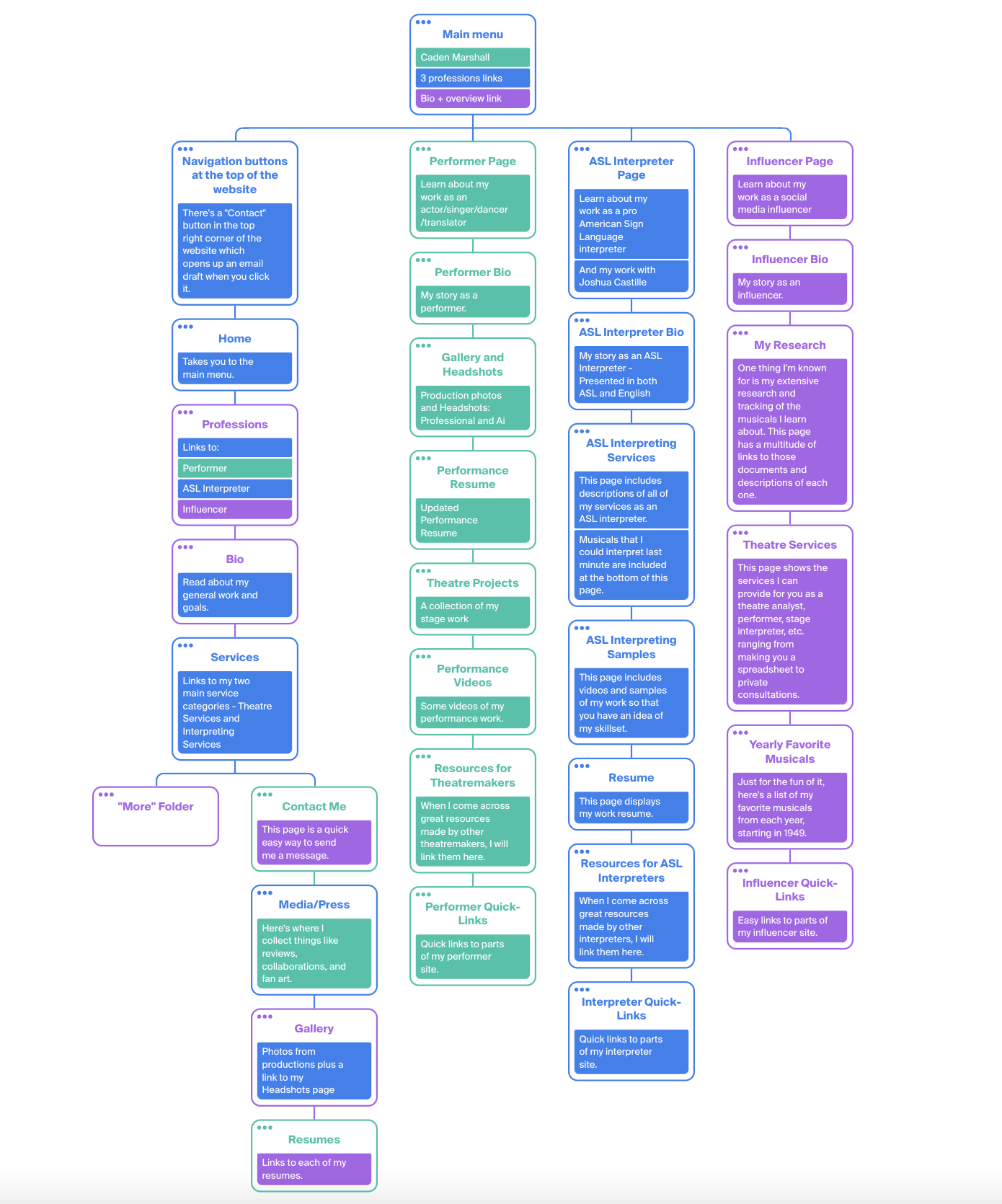 Here’s a breakdown of how my website is formatted, all of the pages, and what they’re for.